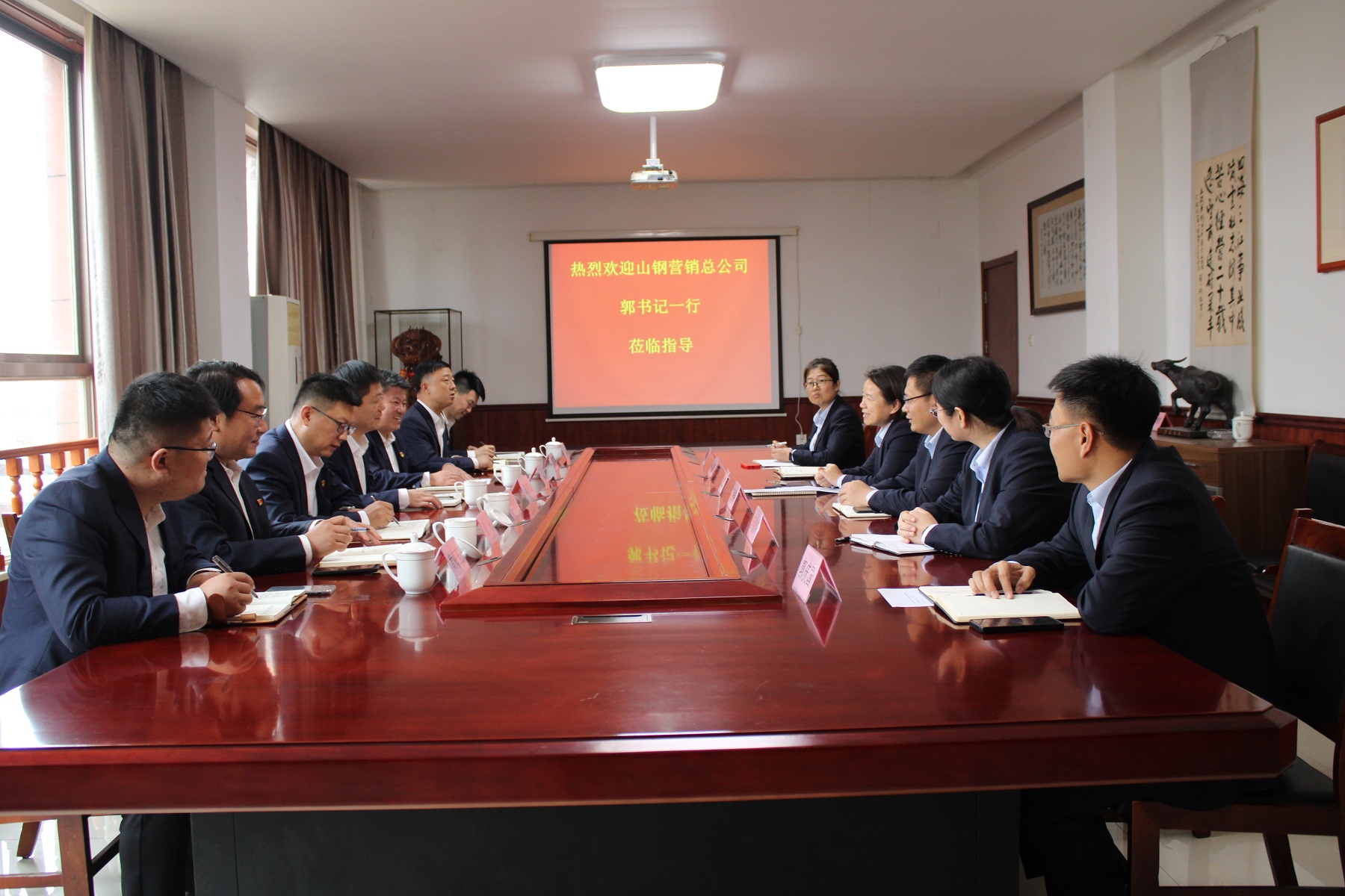 郭書(shū)記一行與信橋領(lǐng)導(dǎo)在二樓會(huì)議室進(jìn)行座談,雙方就貨價(jià)、質(zhì)量品控等問(wèn)題做了深刻交流,重新確定了山鋼與信橋的戰(zhàn)略合作關(guān)系,雙方就今后深化合作,達(dá)成一致意見(jiàn)。